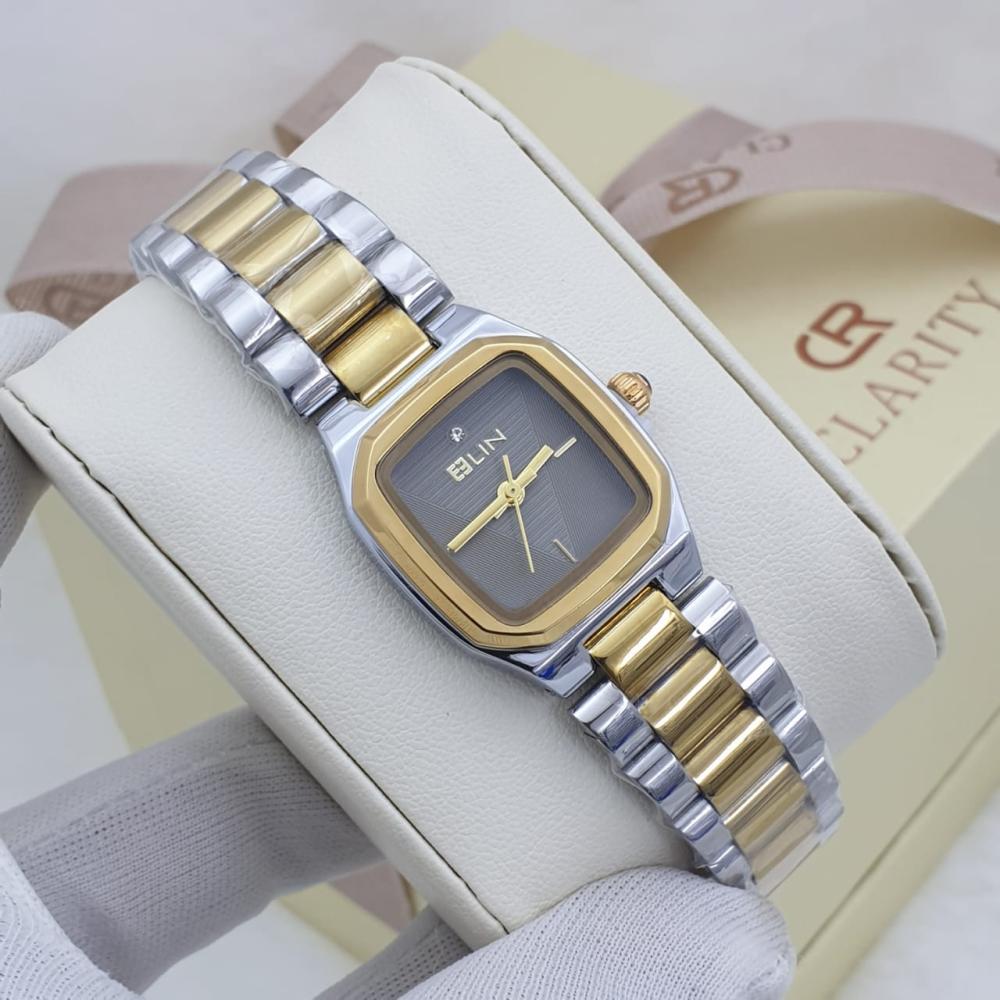 ساعة مميزة بميناء كحلي وإطار ذهبي